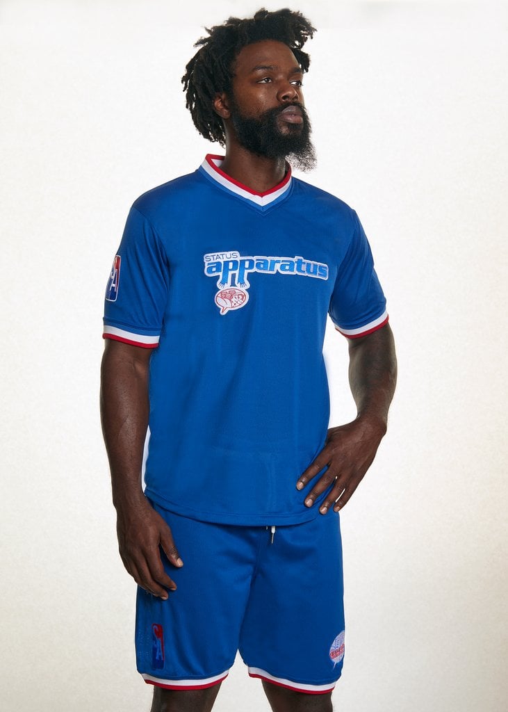 Following the same style as it's matching bright navy top, these shorts have an athletic fit. Cut from a breathable nylon mesh, this lightweight pair are decorated with striped paneling to the sides, while contrasting high quality embroidery sits to the hem for a final flourish.